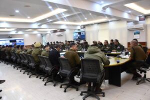 Srinagar, March 03: Director General of Police (DGP) J&K, Shri Nalin Prabhat-IPS, chaired a high-level crime and security review meeting at the Police Control Room (PCR) Kashmir. The meeting was attended by senior police officials, including IGP Kashmir, Range DIGs, district SSPs, and Additional SSPs. IGP Jammu and other officers joined virtually.